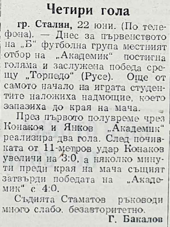 ДСО Академик (Варна) – ДСО Торпедо (Русе) 22 юни 195229 ноември 2025"Спортно Русе" 22 юни 1952 4 - 0 [анулиран] Краен резултат . Начален час Първенство/турнир Сезон Кръг 0:00 „Б“ Републиканска футболна група 1952 XIV кръг Инфо Споделете в: Share on Facebook (Opens in new window) Facebook Share on X (Opens in new window) X Share on WhatsApp (Opens in new window) WhatsApp Share on Telegram (Opens in new window) Telegram Email a link to a friend (Opens in new window) Email Print (Opens in new window) Print