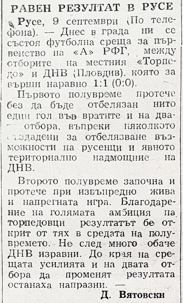 ДСО Торпедо (Русе) – ДНВ (Пловдив) 9 септември 195118 ноември 2025"Спортно Русе" 9 септември 1951 1 - 1 Краен резултат . Начален час Първенство/турнир Сезон Кръг 0:00 „А“ Републиканска футболна група 1951 XX кръг Инфо Споделете в: Share on Facebook (Opens in new window) Facebook Share on X (Opens in new window) X Share on WhatsApp (Opens in new window) WhatsApp Share on Telegram (Opens in new window) Telegram Email a link to a friend (Opens in new window) Email Print (Opens in new window) Print