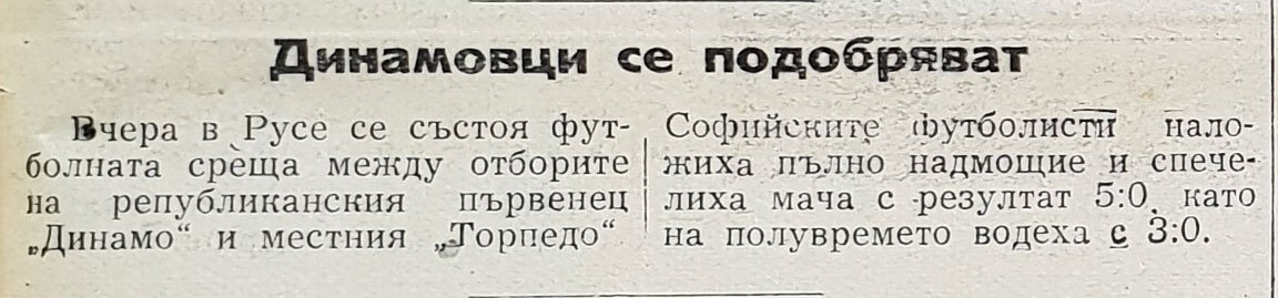 ДСО Торпедо (Русе) – ДСО Динамо (София) 3 юни 19513 юни 2025"Спортно Русе" 3 юни 1951 0 - 5 Краен резултат . Начален час Първенство/турнир Сезон Кръг 0:00 „А“ Републиканска футболна група 1951 XI кръг Инфо Споделете в: Share on Facebook (Opens in new window) Facebook Share on X (Opens in new window) X Share on WhatsApp (Opens in new window) WhatsApp Share on Telegram (Opens in new window) Telegram Email a link to a friend (Opens in new window) Email Print (Opens in new window) Print