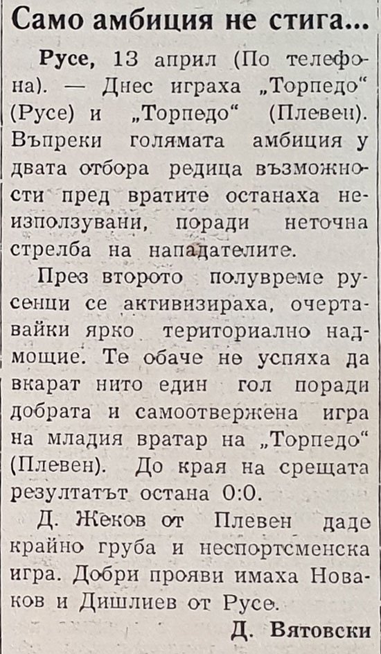 ДСО Торпедо (Русе) – ДСО Торпедо (Плевен) 13 април 195229 ноември 2025"Спортно Русе" 13 април 1952 0 - 0 [анулиран] Краен резултат . Начален час Първенство/турнир Сезон Кръг 0:00 „Б“ Републиканска футболна група 1952 XX кръг Инфо Споделете в: Share on Facebook (Opens in new window) Facebook Share on X (Opens in new window) X Share on WhatsApp (Opens in new window) WhatsApp Share on Telegram (Opens in new window) Telegram Email a link to a friend (Opens in new window) Email Print (Opens in new window) Print
