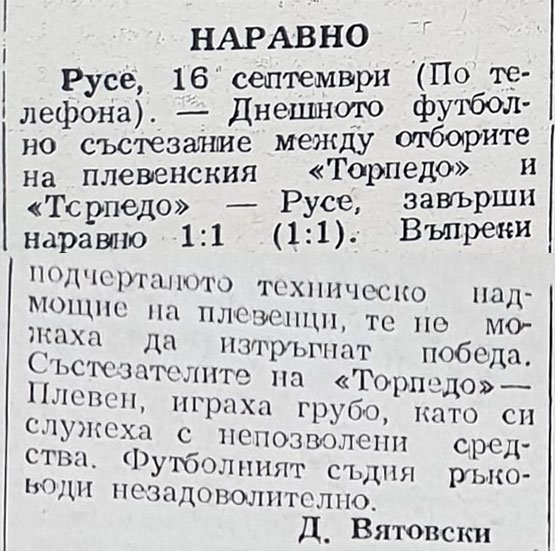 ДСО Торпедо (Русе) – ДСО Торпедо (Плевен) 16 септември 195119 ноември 2025"Спортно Русе" 16 септември 1951 1 - 1 Краен резултат . Начален час Първенство/турнир Сезон Кръг 0:00 „А“ Републиканска футболна група 1951 XXI кръг Инфо Споделете в: Share on Facebook (Opens in new window) Facebook Share on X (Opens in new window) X Share on WhatsApp (Opens in new window) WhatsApp Share on Telegram (Opens in new window) Telegram Email a link to a friend (Opens in new window) Email Print (Opens in new window) Print