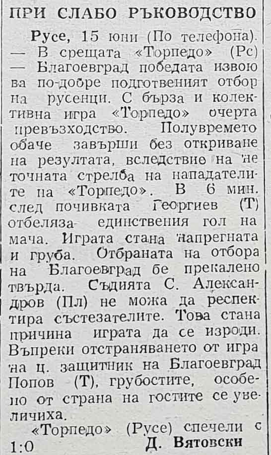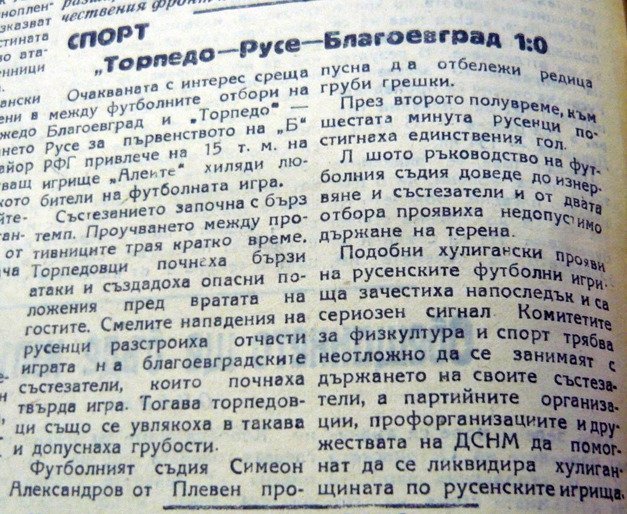 ДСО Торпедо (Русе) – ДСО Червено знаме (Благоевград) 15 юни 19521 декември 2025"Спортно Русе" 15 юни 1952 1 - 0 [анулиран] Краен резултат . Начален час Първенство/турнир Сезон Кръг 0:00 „Б“ Републиканска футболна група 1952 XIII кръг Инфо Споделете в: Share on Facebook (Opens in new window) Facebook Share on X (Opens in new window) X Share on WhatsApp (Opens in new window) WhatsApp Share on Telegram (Opens in new window) Telegram Email a link to a friend (Opens in new window) Email Print (Opens in new window) Print