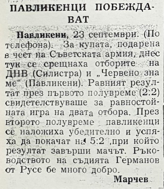 ДСО Червено знаме (Павликени) – ДНВ (Силистра) 23 септември 195121 ноември 2025"Спортно Русе" 23 септември 1951 5 - 2 Краен резултат . Начален час Първенство/турнир Сезон Кръг 0:00 Турнир за Купата на Съветската армия 1951 Първи предварителен кръг Инфо Споделете в: Share on Facebook (Opens in new window) Facebook Share on X (Opens in new window) X Share on WhatsApp (Opens in new window) WhatsApp Share on Telegram (Opens in new window) Telegram Email a link to a friend (Opens in new window) Email Print (Opens in new window) Print