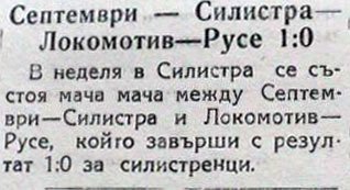 Септември (Силистра) – Локомотив (Русе) 13 юли 194722 септември 2024"Спортно Русе" 13 юли 1947 1 - 0 Краен резултат . Начален час Първенство/турнир Сезон Кръг 0:00 Първенство на Русенска област 1946/47 Финал, първа среща Инфо Споделете в: Share on Facebook (Opens in new window) Facebook Share on X (Opens in new window) X Share on WhatsApp (Opens in new window) WhatsApp Share on Telegram (Opens in new window) Telegram Email a link to a friend (Opens in new window) Email Print (Opens in new window) Print
